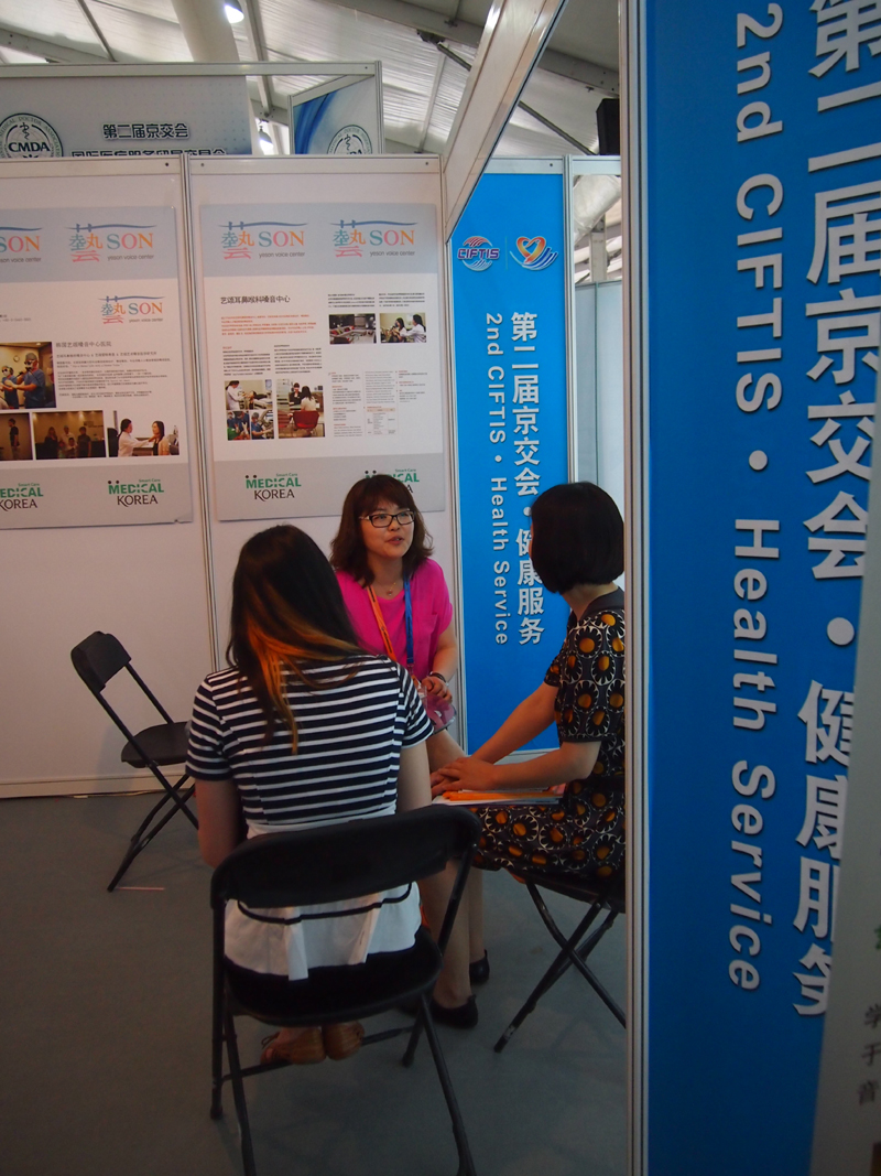 During this 2nd exhibition fair hosted by China Association of Trade in Service and supported by Chinese Preventative Medicine Association, total 138,000 people from 11 different countries took participation proving that it is the largest fair ever held in China. In the 1<sup>st</sup> fair held last year, Yeson Voice Center was the only clinic from Korea and YVC had chances to promote Korea’s developed medical services. This year total 4 hospitals including Yeson Voice Center, Seoul National University Hospital Healthcare System Gangnam Center and JK Plastic Surgery Center took a part in this fair and managed Medical Korea booths.