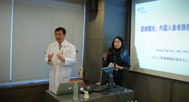 The inspection team had a tour at Yeson Artceum, which is the former voice examination center. They particularly gave an attention to the multichannel phonokinetic evaluation system, which was developed by Yeson Voice Center. The system evaluates the phonatory pattern and substantiated the phonatory muscle usage and kinetic aspect of respiratory phasing through 19 different channels. After the site tour, Dr. Hyung-Tae Kim gave a presentation on the marketing of international patients attracting business.