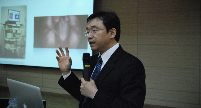 김형태 원장, 이대 성악과 학생 대상으로 특강 진행 예송이비인후과 음성센터 김형태 원장은 지난11월1일 이화여자대학교 음악관 리사이트홀에서 ‘성악가들을 위한 발성학적 이해와 올바른 목소리 관리 방법’을 주제로 특강을 실시했습니다. 이대 성악과 학생 및 관계자 등 약60여명이 참석한 가운데 진행된 이번 특강에서 김형태 원장은 성악가들이 흔히 겪을 수 있는 다양한 음성질환과 예방법 등을 자세한 예시와 함께 알기 쉽도록 설명했습니다. 흥미로운 내용에 참석자들은 강의가 진행된 약90여분 내내 강의에 몰입했으며 강의가 끝난 후에는 많은 질문이 쏟아지기도 했습니다. 이날 김형태 원장은 “미래 한국의 음악계를 이끌 젊은 성악도들이 최상의 목소리 상태를 유지하기 위해서는 목소리 관리가 필수적인데 부족하나마 도움이 된 것 같아 기쁘다”고 소감을 전했습니다.